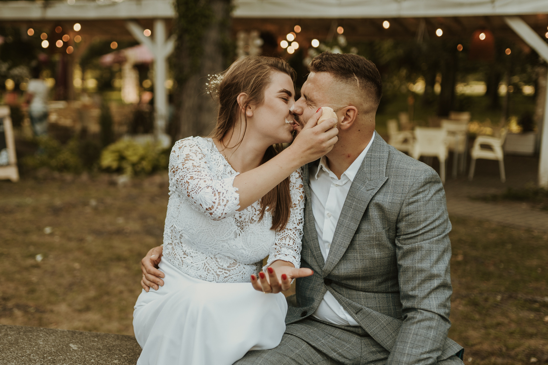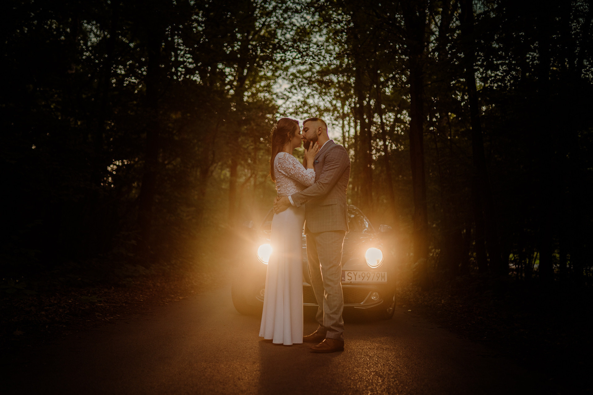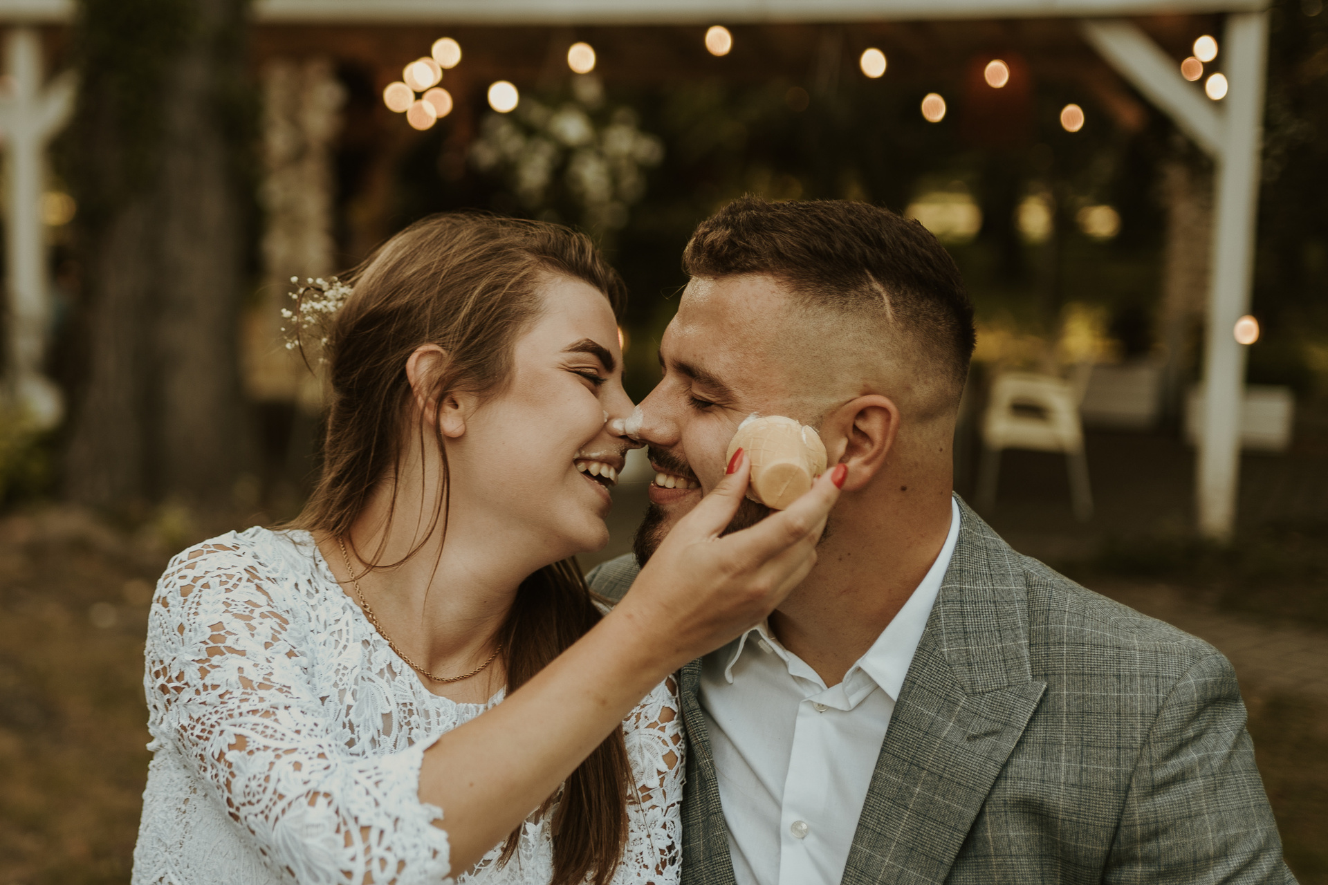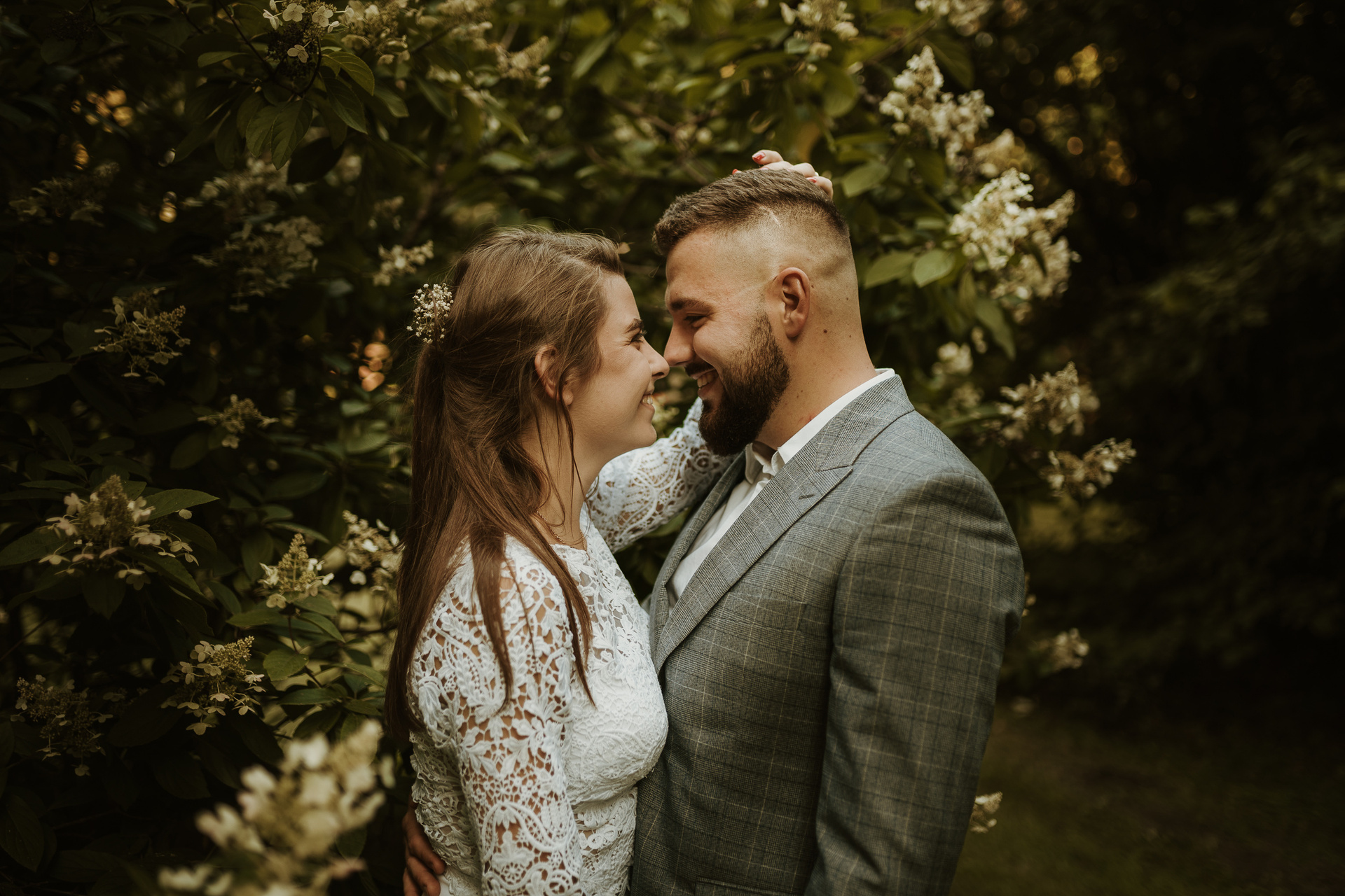 Gdybym miała w kilku słowach określić Darię i Sebastiana, z pewnością pojawiłyby się słowa: spontaniczność, niespodziewaność, wyluzowanie, spokój. Daria i Sebastian to para, która organizuje sobie fotografa dzień przed ceremonią, w międzyczasie wspólnie przeżywają wypadek samochodowy, wizytę w szpitalu. To para, która naprawdę ma w sobie niesamowite pokłady spokoju. Pani, która miała upiec tort mówi im, że jednak nie da rady? Luz, kupimy więcej mniejszych!