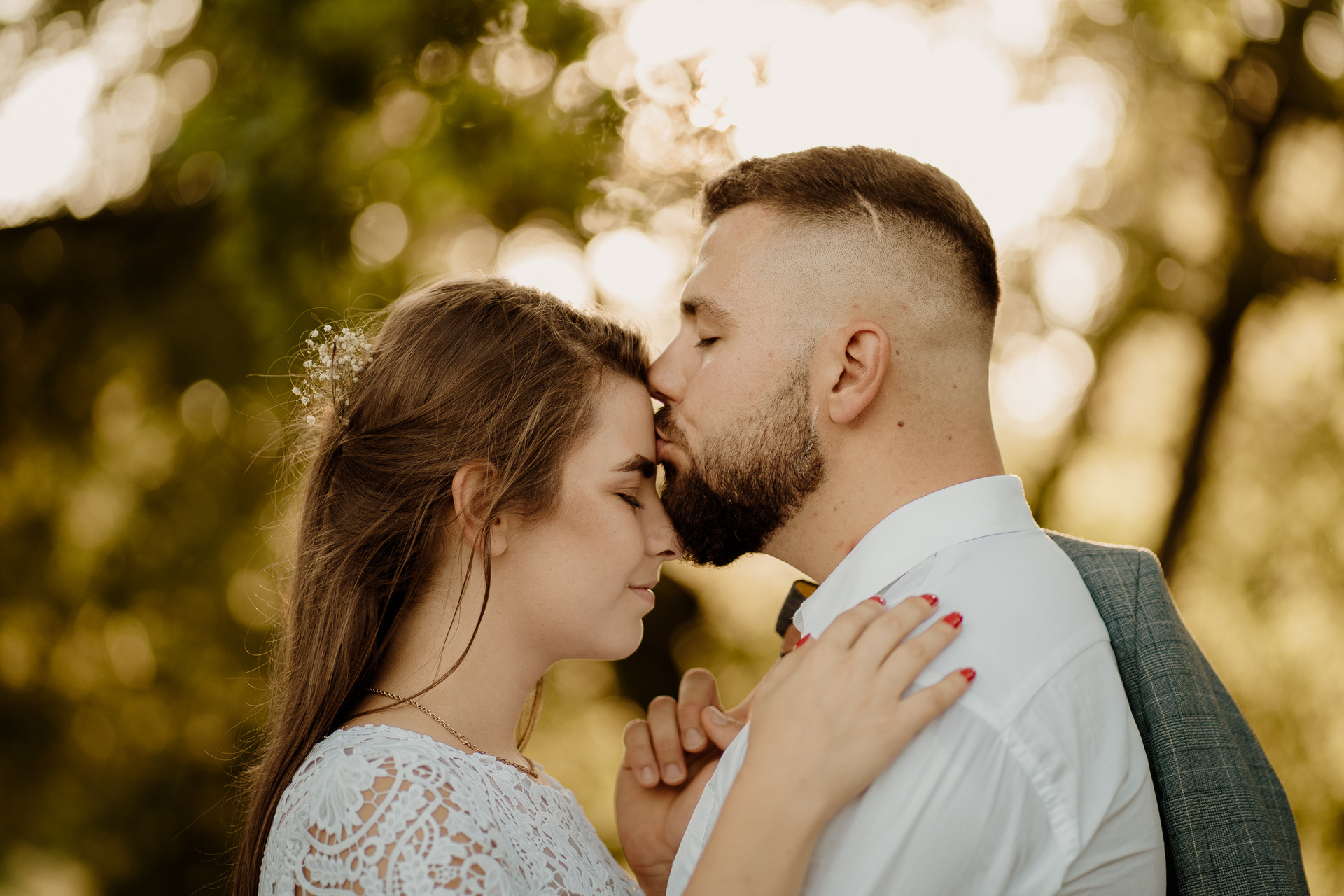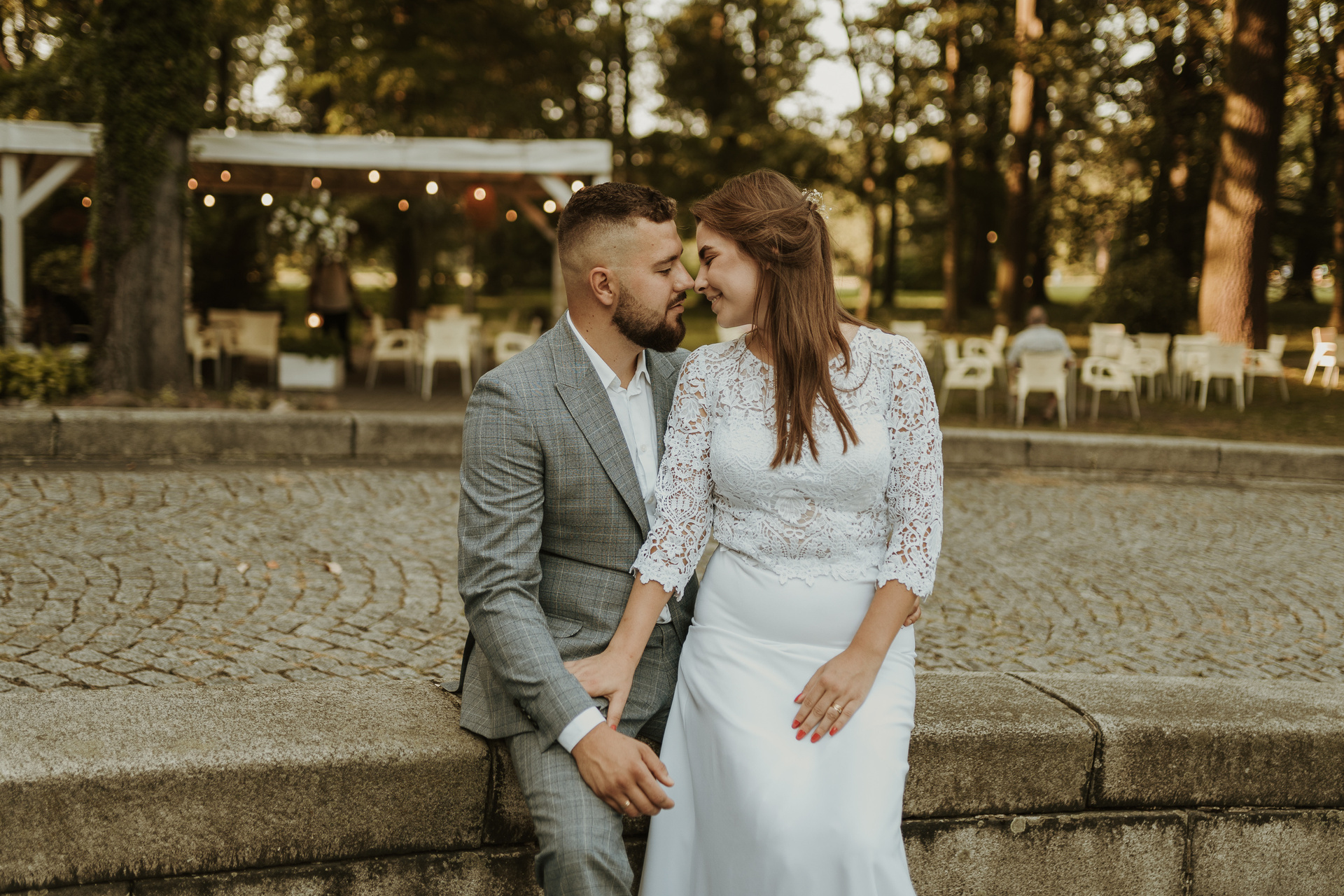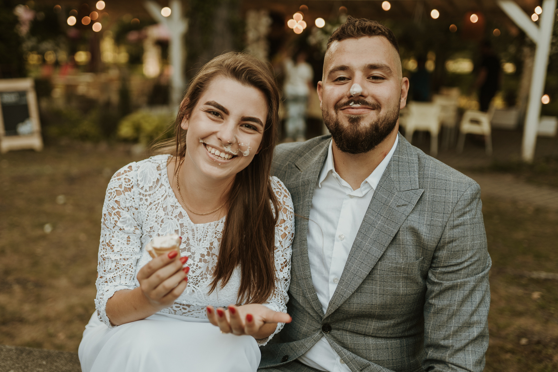 Gdybym miała w kilku słowach określić Darię i Sebastiana, z pewnością pojawiłyby się słowa: spontaniczność, niespodziewaność, wyluzowanie, spokój. Daria i Sebastian to para, która organizuje sobie fotografa dzień przed ceremonią, w międzyczasie wspólnie przeżywają wypadek samochodowy, wizytę w szpitalu. To para, która naprawdę ma w sobie niesamowite pokłady spokoju. Pani, która miała upiec tort mówi im, że jednak nie da rady? Luz, kupimy więcej mniejszych!