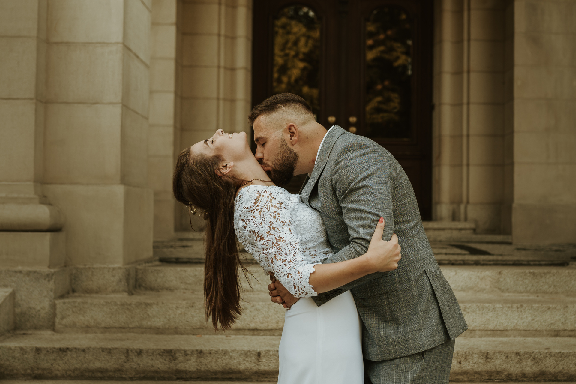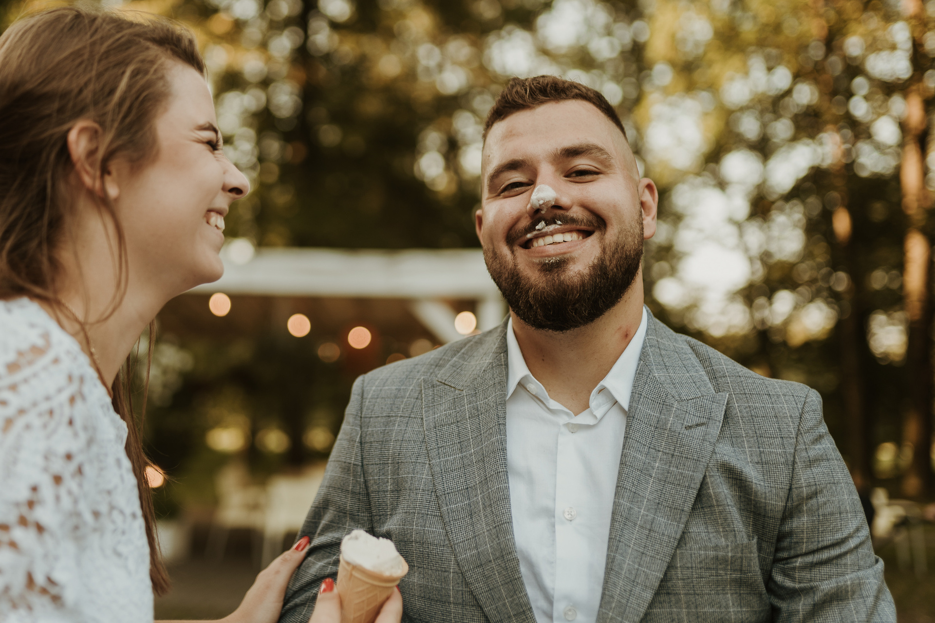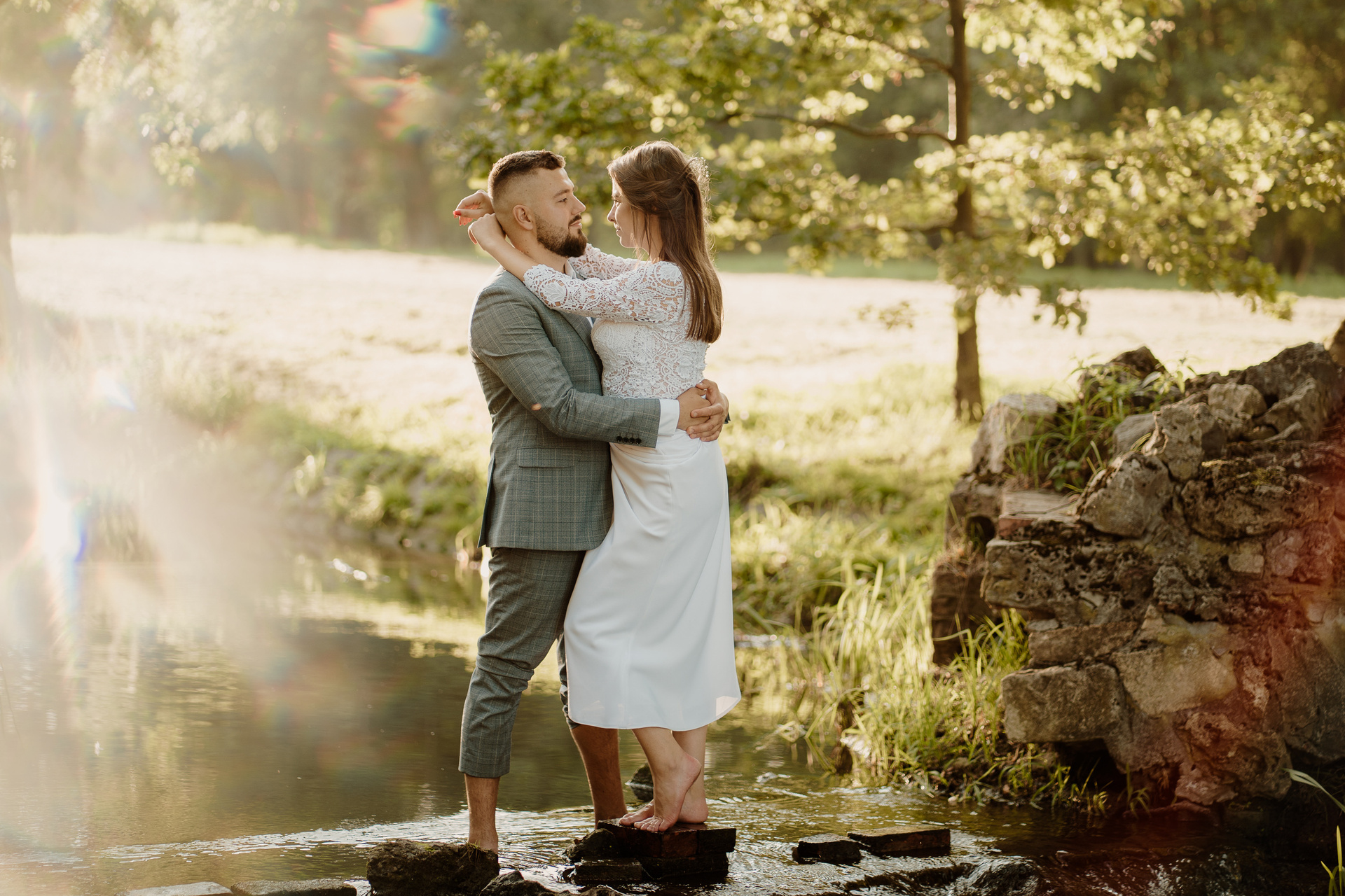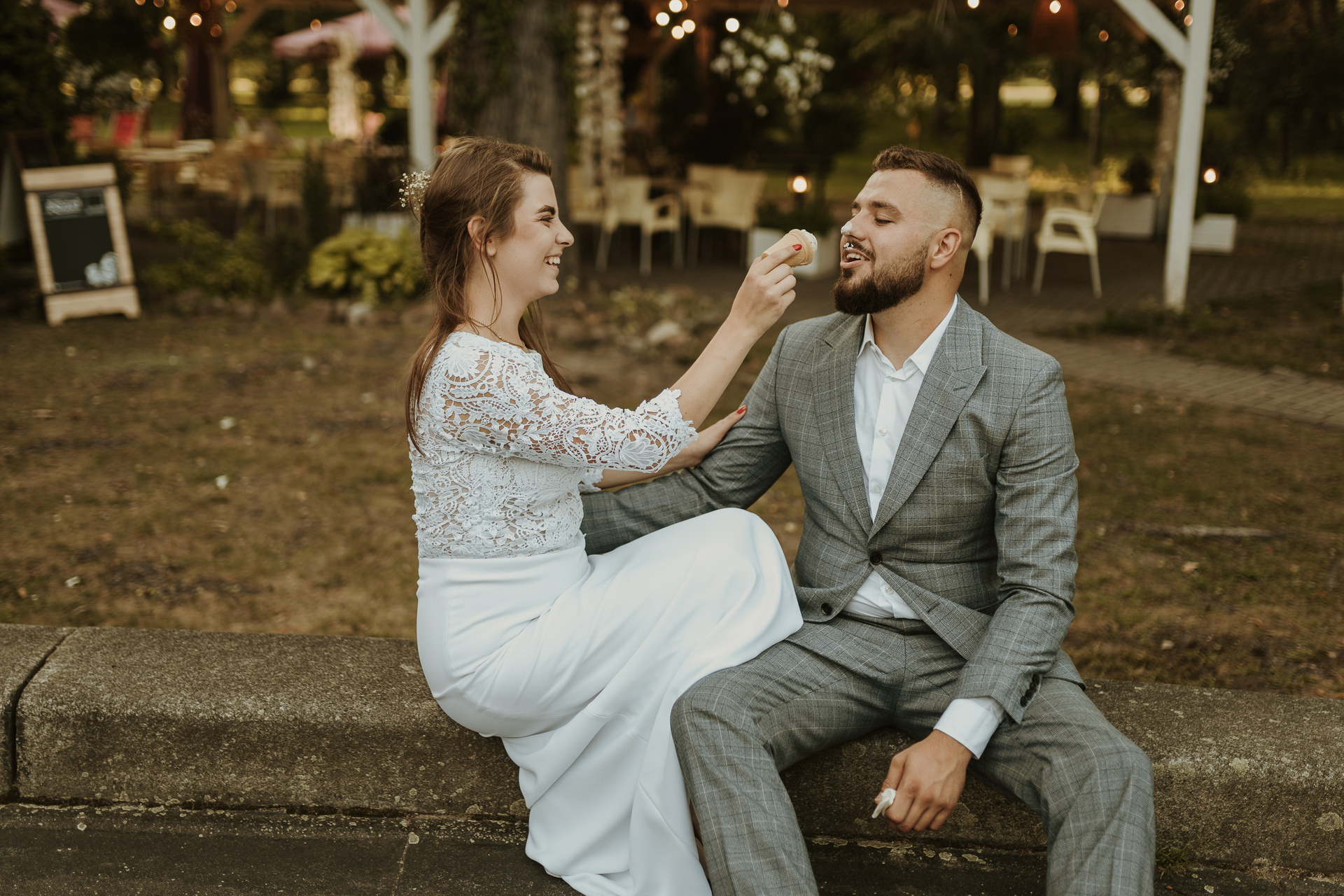 Gdybym miała w kilku słowach określić Darię i Sebastiana, z pewnością pojawiłyby się słowa: spontaniczność, niespodziewaność, wyluzowanie, spokój. Daria i Sebastian to para, która organizuje sobie fotografa dzień przed ceremonią, w międzyczasie wspólnie przeżywają wypadek samochodowy, wizytę w szpitalu. To para, która naprawdę ma w sobie niesamowite pokłady spokoju. Pani, która miała upiec tort mówi im, że jednak nie da rady? Luz, kupimy więcej mniejszych!